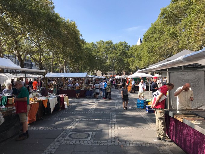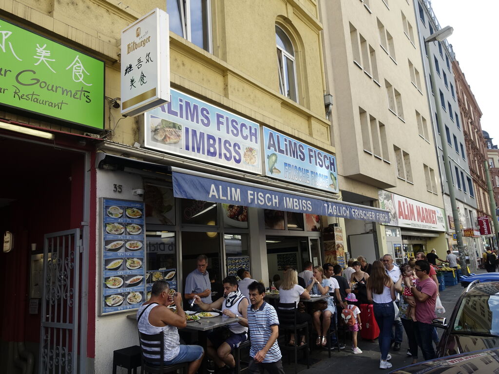 UバーンのHeinrich-Heine-Allee駅からアルトシュタットへ向かう道中には多くの飲食店が立ち並んでいます。